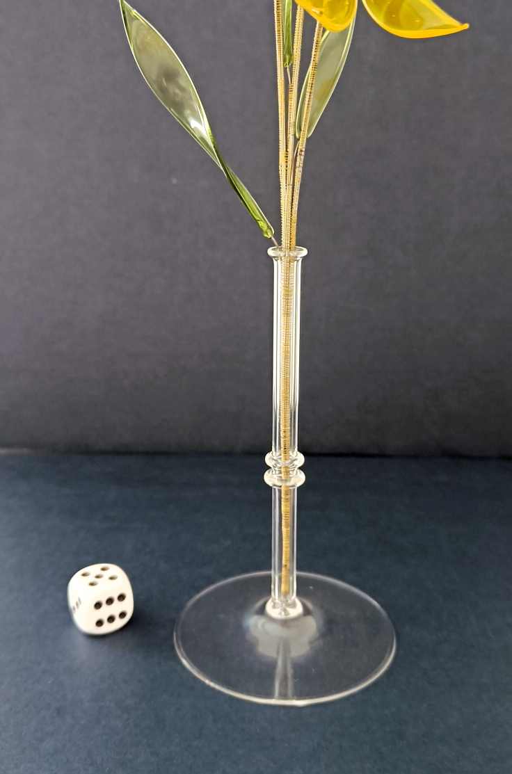 Kleur bloemknop - geel, combinatie mat en transparant met kraaltjes in het midden Kleur blaadjes - groen transparant Hoogte - 28 cm Gewicht - 66 gram