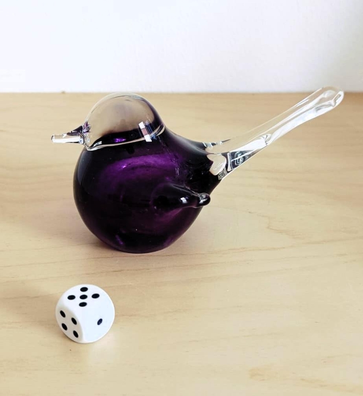 Dit volgeltje is donker paars. Hoofd, staart en vleugels zijn transparant. Dit prachtige vogeltje is geschikt voor het bewaren van ca 30 gram crematie as. Aan de onderkant bevindt zich een opening waar de as er in gaat. We bevelen aan om het buikje van het vogeltje volledig met de as te vullen voor een mooie kleuren overgang. De kleuren worden door de as iets donkerder. Na het vullen kan het eenvoudig met een zelf-hechtend RVS plaatje (bijgeleverd) afgesloten worden. Het vogeltje is handgemaakt (geblazen) en kan daardoor iets afwijken van de foto, elk stuk is uniek. Het is een mooi aandenkobject aan een dierbare en geen standaard urn. Het is een mooi kunstobject met een herinnering. Geschikt voor binnen en ook voor buiten. Lengte van het vogeltje (van snavel tot staart) is 12-14 cm.