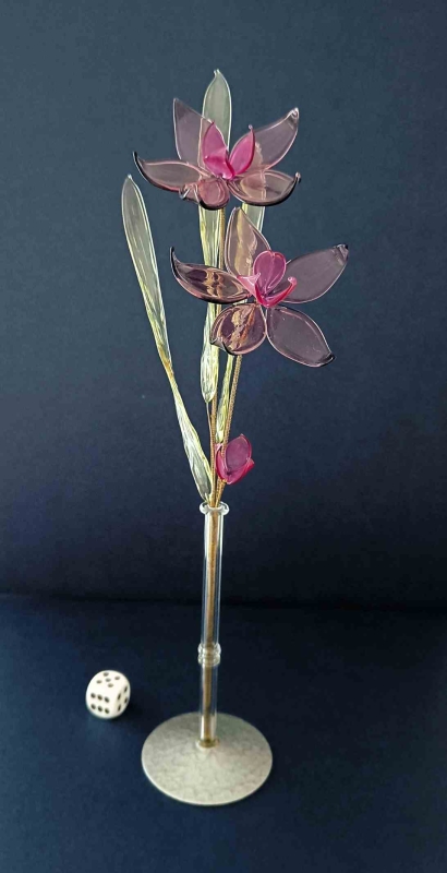 Kleur bloemknop - paars transparant Kleur blaadjes - groen transparant Hoogte - 28 cm Gewicht - 88 gram