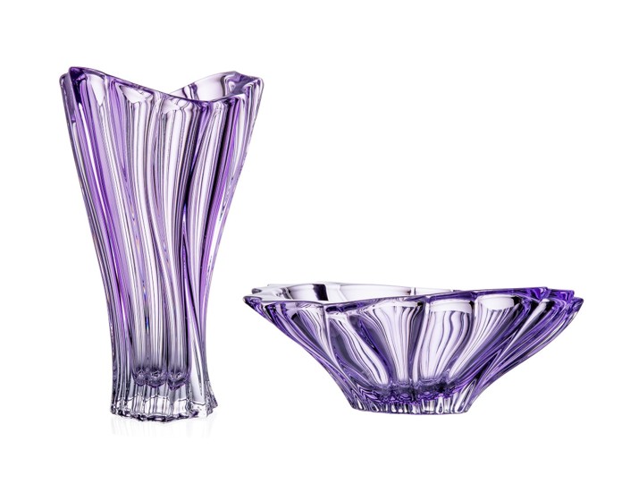 De Plantica serie valt op door zijn origineel ontwerp dat lijkt op het lichaam van een groeiende plant. Een elegante en natuurlijke vorm dat het interieur van elk huis aanvult. Amethyst (licht paarse) kleur, hoge mate van schittering en glastransparantie. Alleen deze maand voordeling samen kopen! Afmetingen vaas: Afmetingen – 32 x 18 x 18 cm Gewicht – 3,7 kg Afmetingen schaal: Afmetingen – 33 x 33 x 12 cm Gewicht – 3,7 kg