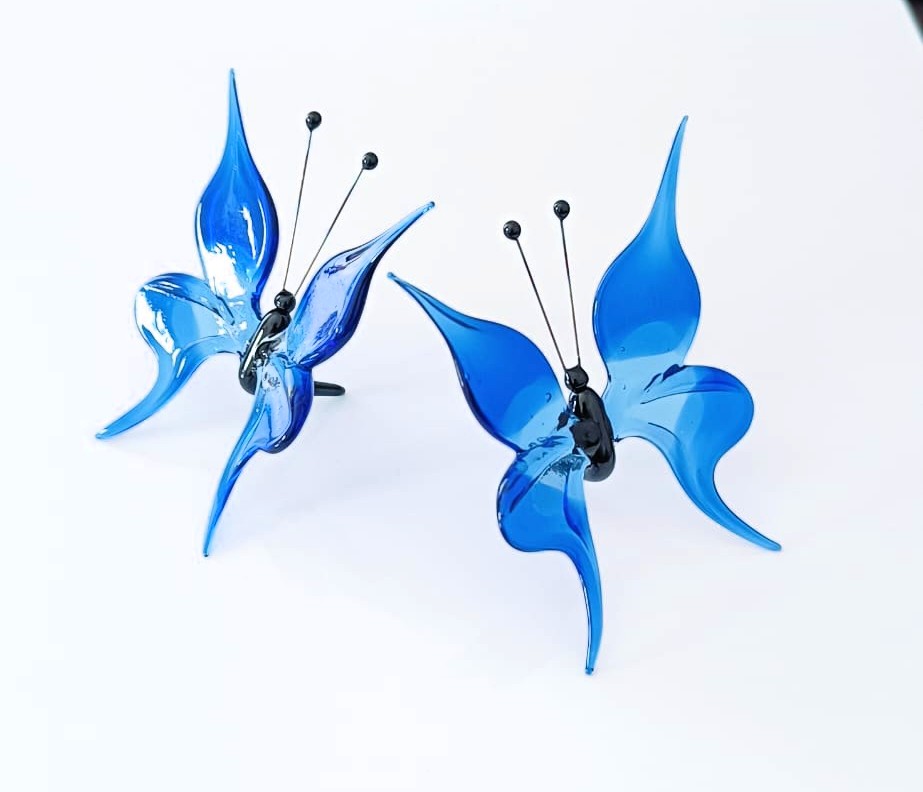 Sierlijke vlinder van glas met blauwe vleugels is tijdloos en passen in elk interieur.Klein kunstwerk voor liefhebbers van glas en natuur. Deze vlinder heeft lichtblauwe kleur aan de binnenkant van de vleugels en donkerblauwe kleur aan de buitenkant. Liever aan andere kleur? Vraag het rustig, we hebben veel meer op voorraad. Handgemaakt dus de geleverde vlinder kan een klein beetje afwijken van de foto.